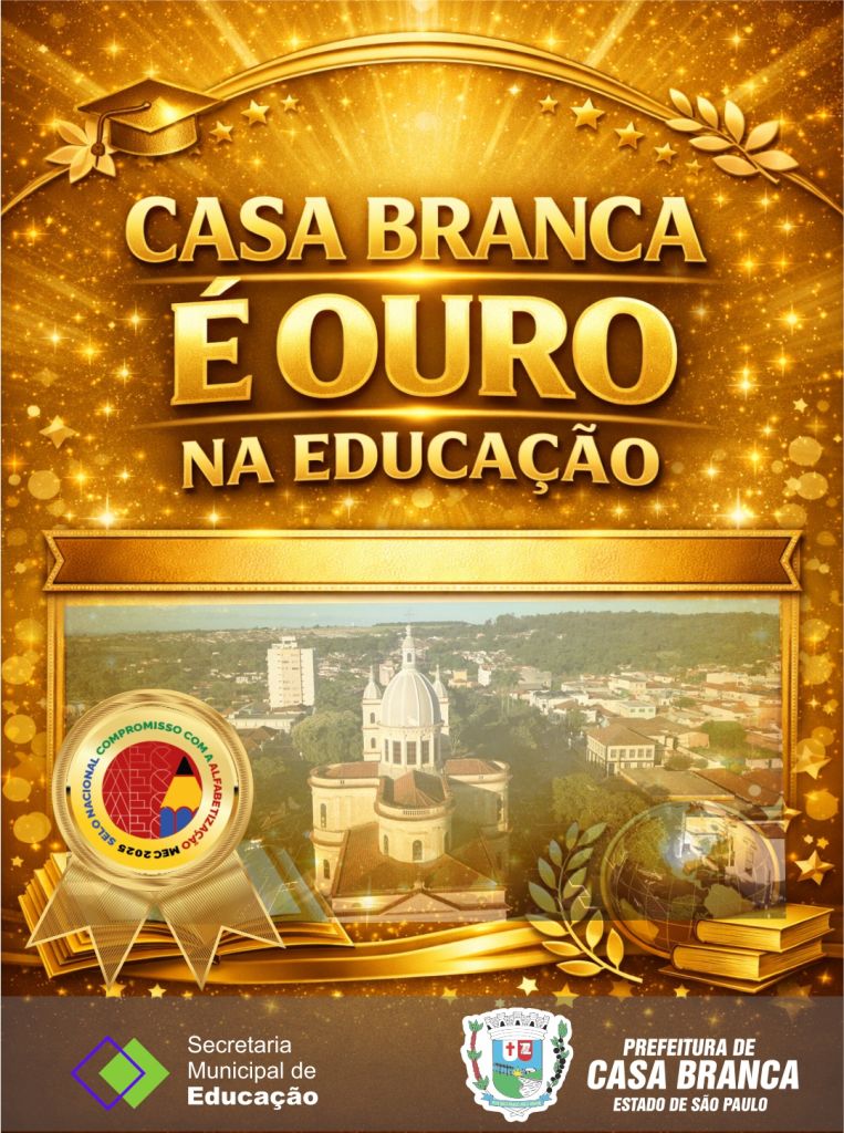 Casa Branca alcançou um importante marco na educação ao conquistar a classificação Ouro, do Selo Nacional Compromisso com a Alfabetização – reconhecimento concedido pelo Ministério da Educação (MEC) aos municípios que atingem excelência nos índices de alfabetização infantil.