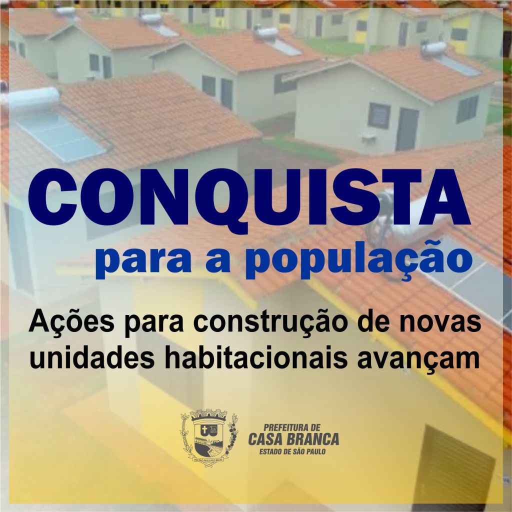 A Prefeitura de Casa Branca conquistou a implantação de 50 unidades habitacionais, ampliando as políticas públicas voltadas à moradia digna e à redução do déficit habitacional no município. O empreendimento será erguido no Conjunto Habitacional Antônio Geraldo Romano, com recursos do Novo PAC do Governo Federal, financiado pelo Fundo Nacional de Habitação de Interesse Social (FNHIS), beneficiando famílias em situação de vulnerabilidade social.